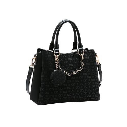 O material com fundo fosco combinado à textura do monograma em verniz cria um efeito refinado e discreto, transmitindo elegância sem exageros.
