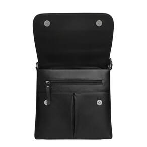 Bolsa Feminina Couro Transversal Aba Material Forte e resistente Compartimento externo Compartimento interno Alça transversal regulavel Fechamento com zíper Acabamento em costura uniforme