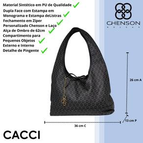 O grande destaque desta bolsa é sua versatilidade: com dupla face, oferece duas opções de uso em uma única peça, apresentando estampa em monograma de um lado e padrão de listras do outro. O fechamento ecler personalizado Chenson proporciona segurança e praticidade, enquanto o laço frontal e o detalhe de pingente acrescentam um toque delicado e feminino ao design. A alça de ombro de 62 cm garante conforto ao carregar, tornando o uso ainda mais agradável.
