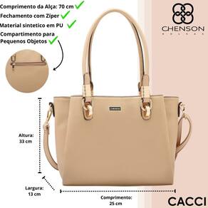Bolsa Feminina Chenson feita em material Poliuretano com seu Fechamento prático e forro em tecido personalizado. Compartimento para pequenos objetos na area externa e bolso interno. Detalhes na frente com Alça em poliuretano, acabamento em costura contrastante.