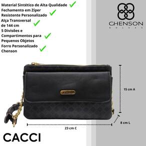 Com cinco divisões e compartimentos funcionais, a bolsa Chenson facilita a rotina, mantendo cada item essencial sempre ao alcance das mãos. Pequenos objetos como chaves, documentos e cosméticos encontram o lugar certo, enquanto o design elegante complementa qualquer produção com um toque de charme discreto. Um acessório indispensável para quem deseja unir funcionalidade, estilo e qualidade em uma única peça.