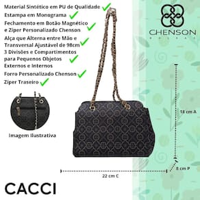 Versátil e elegante, a bolsa conta com uma alça que alterna entre o uso de mão e transversal, ajustável em até 98 cm, proporcionando liberdade para diferentes formas de uso conforme o momento. O destaque da estampa em monograma reforça a identidade marcante da peça, tornando-a um acessório indispensável para compor visuais cheios de estilo. A Bolsa Chenson Estampa Monograma é perfeita para quem deseja um produto funcional, moderno e com um toque de exclusividade que traduz personalidade e bom gosto.