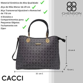 A Bolsa Chenson é sinônimo de elegância e funcionalidade para o dia a dia. Produzida em material sintético de alta qualidade, ela combina resistência, acabamento refinado e um design clássico que nunca sai de moda. Seu formato estruturado valoriza qualquer look, transmitindo sofisticação e praticidade em todos os momentos.