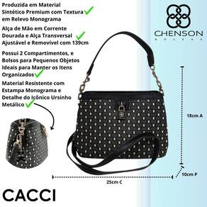 Confeccionada em material resistente e de toque refinado, essa bolsa traz o icônico monograma da marca em relevo, evidenciando autenticidade e atenção aos detalhes. O destaque fica por conta do adorável ursinho metálico, símbolo marcante da Chenson, que adiciona um charme especial e um toque de exclusividade. A alça de mão em corrente oferece um visual elegante, enquanto a alça transversal ajustável e removível proporciona conforto e versatilidade no uso.