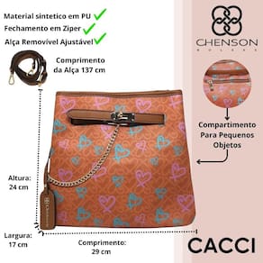 Descubra o charme clássico e funcionalidade com a Bolsa Feminina Chenson. Produzida em PU de alta durabilidade, essa bolsa oferece espaço amplo e bem distribuído, ideal para acompanhar a rotina de forma prática e organizada. O fechamento com ecler proporciona segurança, e a alça transversal ajustável e removível em PU permite versatilidade no uso, atendendo a diferentes estilos. Para completar o visual autêntico, o chaveiro com o logo Chenson agrega um toque sofisticado ao acessório perfeito para o dia a dia.