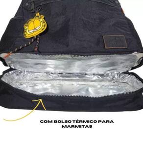 - Vamos destacar suas especificações inspiradoras: - Material principal em nylon crinkle e duplo telado, que oferece resistência e um visual esportivo sofisticado. - Detalhes marcantes em PVC e pespontos, evidenciando a qualidade e o cuidado na confecção. - Alça acetinada que proporciona conforto para o ombro, independentemente do peso carregado. - Zíper tratorado robusto, que confere um toque urbano ao design e segurança aos itens armazenados. - Acompanha chaveiro emborrachado com detalhe de cadarço, trazendo um charme a mais e a irreverência do Garfield. - Banho de metal ônix, contribuindo para um visual moderno e durável. - Forro interno laranja, facilitando a visualização dos objetos dentro da bolsa. - Bolso externo no verso, ideal para guardar itens que necessitam de acesso rápido. - Divisórias internas inteligentes que ajudam a manter tudo organizado. - Bolso telado para itens menores e um exclusivo bolso térmico, perfeito para conservar alimentos e bebidas na temperatura desejada.