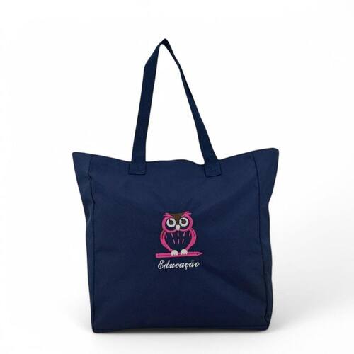 Bolsa Feminina Professora Educação Azul Marinho Coruja Pink