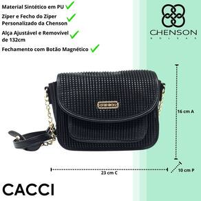 Os detalhes na frente e a alça acorrentada em ferragem dourada, combinada com PU, trazem um charme único e sofisticado. No interior, o forro em tecido personalizado com o logo Chenson e o compartimento para pequenos objetos mantêm tudo no lugar, além de adicionar um toque de exclusividade. O acabamento em costura contrastante finaliza o visual com muita personalidade, fazendo desta bolsa uma escolha indispensável para o seu dia a dia!