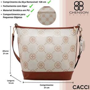 Bolsa Feminina Chenson feita em Material sintético (PU couro sintético) com Fechamento prático e botão magnético com Amplo espaço. Detalhes na frente Alça em PU compartimento para pequenos objetos Forro em tecido personalizado com logo Chenson acabamento em costura contrastante. Acompanha Chaveiro espelho Chenson Acompanha alça transversal removível e ajustável.