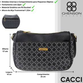 Confeccionada em PU de alta qualidade, esta elegante bolsa Chenson combina sofisticação e funcionalidade. Seu design refinado conta com duas divisões espaçosas, ideais para organizar pequenos objetos com praticidade. O forro em tecido exclusivo, estampado com o icônico logo Chenson, eleva o charme e a identidade da peça. O fechamento principal em ecvler personalizado garante segurança e estilo, enquanto a alça em PU e o acabamento impecável em costura contrastante agregam um toque de sofisticação. Para um brilho extra, os detalhes em ferragem dourada finalizam o modelo com elegância atemporal.
