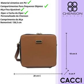 Os detalhes na parte frontal e o acabamento com costura contrastante trazem um toque moderno e sofisticado, destacando a bolsa em qualquer ocasião. Além disso, o forro em tecido personalizado com o logo Chenson dá um toque especial e exclusivo ao modelo. Para completar, a alça em PU oferece conforto e praticidade para o uso diário, tornando esta bolsa a sua aliada ideal para compor looks versáteis e cheios de estilo.
