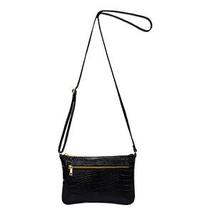 Bolsinha estruturada, pequena, feminina, transversal em couro, com alça comprida para uso transversal ou tiracolo lateral com regulagem de tamanho / altura. Metais na cor dourada e couro com textura. Pode ser usada no dia a dia ou como uma peça curinga para finalizar seu look em seus eventos sociais, festinhas e baladas. O forro é confeccionado em cetim com texturas variadas tipo 'animal print' (padrão oncinha) ou similar, que valorizam ainda mais o produto. Possui 1 bolsinho externo e 1 bolsinho interno ambos fechados com zíper para organizar pequenos objetos. O fechamento da parte superior principal é em ziper de metal que proporciona um fácil deslize, elegância e segurança aos seus objetos.