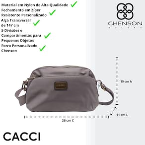 A bolsa transversal Chenson foi criada para quem busca praticidade e estilo em um único acessório. Seu design compacto, mas surpreendentemente espaçoso, é ideal para acompanhar a rotina com leveza e organização. O modelo conta com 5 divisões internas, perfeitas para manter tudo em seu devido lugar — desde os itens pessoais até pequenos objetos do dia a dia. Com um acabamento de alta qualidade, a peça reflete o cuidado e a elegância característicos da marca.