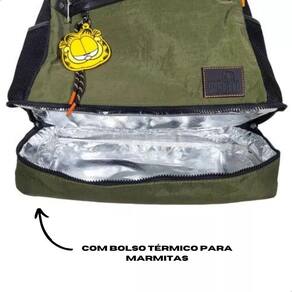 - Vamos destacar suas especificações inspiradoras: - Material principal em nylon crinkle e duplo telado, que oferece resistência e um visual esportivo sofisticado. - Detalhes marcantes em PVC e pespontos, evidenciando a qualidade e o cuidado na confecção. - Alça acetinada que proporciona conforto para o ombro, independentemente do peso carregado. - Zíper tratorado robusto, que confere um toque urbano ao design e segurança aos itens armazenados. - Acompanha chaveiro emborrachado com detalhe de cadarço, trazendo um charme a mais e a irreverência do Garfield. - Banho de metal ônix, contribuindo para um visual moderno e durável. - Forro interno laranja, facilitando a visualização dos objetos dentro da bolsa. - Bolso externo no verso, ideal para guardar itens que necessitam de acesso rápido. - Divisórias internas inteligentes que ajudam a manter tudo organizado. - Bolso telado para itens menores e um exclusivo bolso térmico, perfeito para conservar alimentos e bebidas na temperatura desejada.