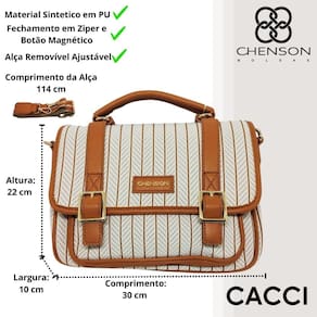 Bolsa Feminina Chenson. Ideal para um look versátil e sofisticado, esta bolsa em PU oferece fechamento com ecler e botão magnético para maior segurança. Com duas divisões internas, ela possui espaço ideal para organizar itens essenciais. A bolsa conta com detalhes modernos na frente, alça fixa em PU e uma alça transversal removível e ajustável, garantindo praticidade e estilo. O forro personalizado e o acabamento em costura contrastante com base de fundo completam o design com elegância.