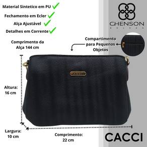 No interior, o destaque fica por conta do compartimento para pequenos objetos, pensado para manter seus pertences sempre organizados. Prática, elegante e com o toque inconfundível da Chenson, essa bolsa é perfeita para quem valoriza beleza aliada à funcionalidade em um único acessório.