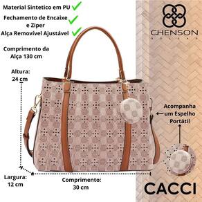 A alça em PU com acabamento refinado em costura contrastante proporciona conforto e charme ao visual. Para completar, a bolsa acompanha um chaveiro espelho Chenson , adicionando ainda mais sofisticação ao acessório, harmonizando perfeitamente com os detalhes em ferragens douradas .