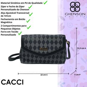 Com design sofisticado e funcional, esta bolsa é a escolha perfeita para quem busca elegância e praticidade. Confeccionada em PU de alta qualidade, conta com duas divisões internas, proporcionando organização para pequenos objetos. Seu forro em tecido personalizado com o logo Chenson adiciona um toque exclusivo ao modelo.
