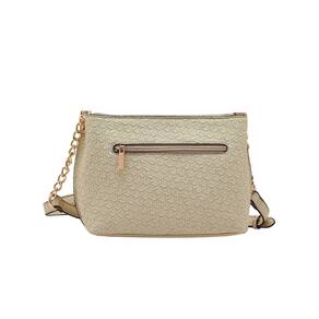 A textura geométrica em relevo adiciona sofisticação ao visual, enquanto o detalhe em corrente na alça traz um toque fashion e elegante. Versátil, combina facilmente com looks casuais ou produções mais refinadas.