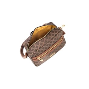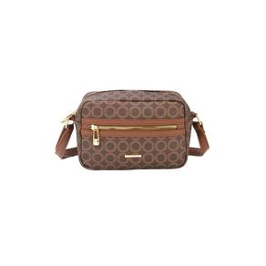 Características: A alça transversal regulável Estampa de monograma traz autenticidade à peça Possui bolso frontal com zíper dourado, como os demais metais da bolsa. O interior é forrado em tecido e conta com um bolso.
