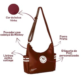 Bolsa Hobo Média Mickey Mouse Sport College Moderna Urbano - Cor: Vinho