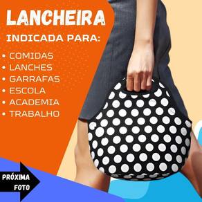 Dimensão: 30cm altura com a alça de mão x 30 largura x 18 cm largura do fundo da lancheira