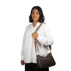 Bolsa tiracolo de tamanho pequeno com acabamento estruturado e formato retangular