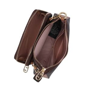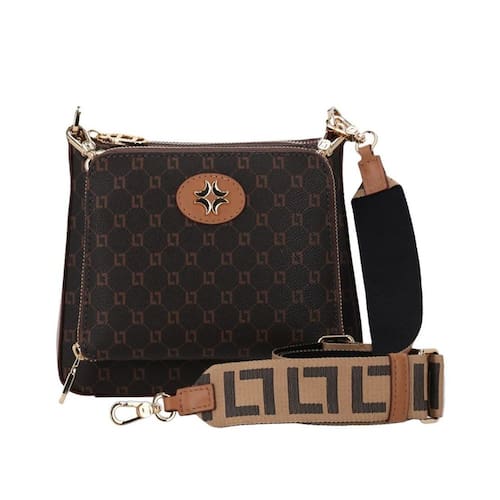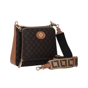 Modelo compacto e versátil, com estrutura em monograma, fechamento duplo e alça ajustável. Ideal para quem busca estilo prático e leve em acessórios pequenos.