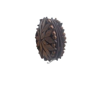 Bolsa Artesanal de Madeira, Marrom Clara, Redonda, tipo Carteira, Porta-moedas