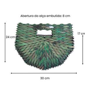 Bolsa Madeira Meia Lua Alça Embutida Verde 30cm, Alça Embutida, com Zíper e interior em tecido cetim