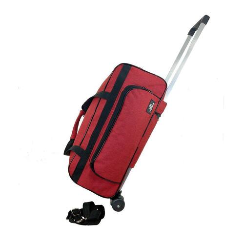 Bolsa mala bagagem mão bordo média viagem com rodinha Cor: Vermelho ESCURO MESCLA Bolsa mala de mão suporte fixo com rodinhas e alça retrátil para acompanhar você nos passeios ou viagens rápidas, tamanho médio com boa capacidade interna e medidas dentro do limite da ANAC para ser levada em bordo de avião sem pagar excedente de bagagem é também resistente e alta costura. Possui bolso frontal o que facilita e organiza na guarda de pequenos objetos e documentos, alça de mão e tiracolo que deixa as mãos livres. Medidas total do suporte com a bolsa: 55 cm altura x 31 cm largura x 25 cm profundidade/ lateral- Medidas da bolsa sem suporte: 51 cm largura x 22 cm altura x 29 cm profundidade/ lateral- alça tiracolo: 145 cm comprimento- Composição: nylon/ poliéster- Suporte com rodinhas resistentes e alça retrátil de alumínio - Peso do produto: 1,8 kg- Capacidade: 30L