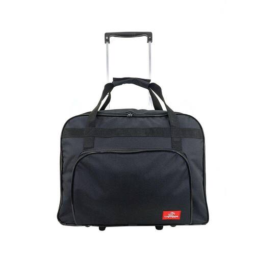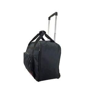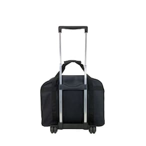 - Suporte fixo na bolsa com rodinhas duplas e alça retrátil ( 80 cm de altura esticada ) em alumínio