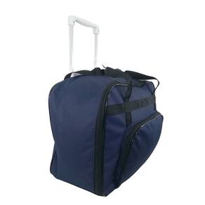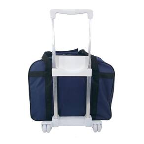 - Suporte fixo na bolsa com rodinhas duplas e alça retrátil ( 80 cm de altura esticada ) em alumínio