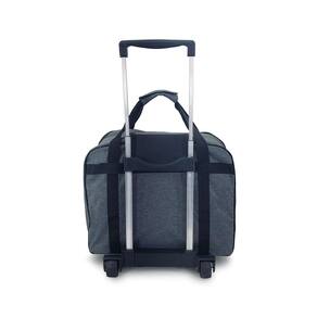 - Suporte fixo na bolsa com rodinhas duplas e alça retrátil ( 80 cm de altura esticada ) em alumínio