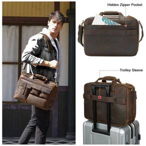 Materiais Superiores Feito de couro de couro de grão integral grosso com zíperes de metal YKK de alta qualidade. Hardware personalizado e costura durável garantem durabilidade de longa duração. Design conveniente Este design de pasta de negócios com capa de laptop destacável, você pode removê lo para expandir o espaço de uso quando não precisar carregar um laptop. Uma alça de bagagem na parte de trás permite que você a coloque na mala, facilitando sua viagem. Estrutura O exterior inclui 4 bolsos frontais pequenos, 1 bolso frontal grande com zíper contém 2 porta canetas, 4 slots para cartões, 5 bolsos deslizantes, 1 bolso traseiro com fecho magnético. Interior com 1 bolsa removível para laptop e 1 bolso interno com zíper Marca: Não Informado