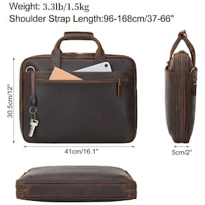 Design fino e de humanização Ultra fina com cerca de 2 de largura, a bolsa para laptop é mais leve do que outras. Design de abertura de 180 conveniente para você alcançar o item rapidamente. Com alça acolchoada ajustável e destacável, a bolsa carteiro pode ser transportada com menos esforço, podendo ser convertida de bolsa para bolsa transversal ou bolsa de ombro. Você pode usá lo como pasta de advogado, bolsa para laptop ou bolsa casual. O design clássico é perfeito para pessoas de negócios. Full Grain Leathe Esta maleta para laptop é feita de couro de vaca real de de espessura processado com tecnologia de couro de cavalo maluco, a textura natural do couro de vaca pode ser sentida. A característica diferenciada do couro crazy horse é seu visual retrô com riscos desordenados na superfície no início, mas o couro fica mais brilhante com o aumento do tempo de uso surpreendentemente. Este tipo de bolsa de couro goza de popularidade devido à durabilidade e resistência por décadas. YKK Zíper e Acessórios de Qualidade Fecho de zíper de metal YKK com controles deslizantes duplos, que pode suportar 1000 vezes o teste de força de tração, mantém seus itens s e à mão na maleta de couro marrom. Hardware de metal de bronze resistente, forro resistente a rasgos, costura requintada por artesãos qualificados garantem a longevidade da bolsa de trabalho masculina. Almofada de couro de flor integral em alças são confortáveis para suas mãos Marca: Não Informado