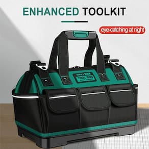 Bolsa Maleta de Ferramentas com Fundo Reforçado - Organização e Durabilidade Garantidas Se você busca praticidade e resistência para suas ferramentas, encontrou a solução ideal Apresentamos nossa Bolsa Maleta de Ferramentas com fundo reforçado, projetada para atender às necessidades dos profissionais mais exigentes. Confira as características que fazem desta bolsa a escolha perfeita para armazenar e transportar suas ferramentas com segurança: Características Principais: 14 Bolsos e Grande Capacidade: Com 8 bolsos externos e 6 bolsos internos, esta maleta oferece espaço generoso para acomodar uma variedade de ferramentas, mantendo tudo organizado e otimizando o espaço. Fácil de Escolher e Colocar: O design de abertura superior, os zíperes duplos com trava e a placa rígida interna de borracha com plástico rígido resistente que proporcionam facilidade na escolha, colocação e organização das ferramentas. Resistente à deformação, garante praticidade no uso diário. Fácil de Transportar: Equipada com alça de ombro extra ajustável, ombro de borracha acolchoado e alça de borracha, esta bolsa é fácil de transportar e alivia a fadiga das mãos e a pressão nos ombros. Além disso, é à prova d'água para enfrentar diversos ambientes de trabalho. Super Durável: Fabricada com tecido Oxford de camada dupla, densidade 1680D, esta bolsa é leve, resistente e oferece durabilidade incomparável. Projetada para resistir ao desgaste do uso intensivo, proporcionando confiabilidade a longo prazo. Proteção Abrangente: A base de de borracha e plástico ABS proporciona uma barreira eficaz contra a água, mantendo suas ferramentas limpas e secas mesmo em condições climáticas adversas, como chuva e neve. Invista na qualidade e praticidade que sua rotina profissional merece. Adquira agora a Bolsa Maleta de Ferramentas com Fundo Reforçado e tenha a certeza de contar com um produto que supera suas expectativas. Organize-se com eficiência e tenha suas ferramentas sempre à mão. Compre já