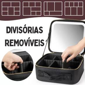 Características: 1. A tensão dupla dos zíperes de alta qualidade é mais suave, você pode abrir facilmente o estojo de maquiagem do espelho. 2. Este estojo de maquiagem é feito à mão com material de couro PU premium, à prova dágua e durável. 3. Com divisórias e compartimentos ajustáveis, pode conter diferentes tamanhos de maquiagem. 4. Nosso estojo de maquiagem tem 3 modos de luz coloridos: pressione rapidamente para mudar de cor, pressione e segure para ajustar o brilho da luz. 5. A bateria integrada de 1.000 mAh permite uma semana de trabalho com uma única carga.