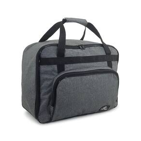Bolsa maleta para transporte de máquina de costura portátil em material nylon com bolso frontal e fechamento em zípers. Possui fundo reforçado de madeira para transporte seguro.