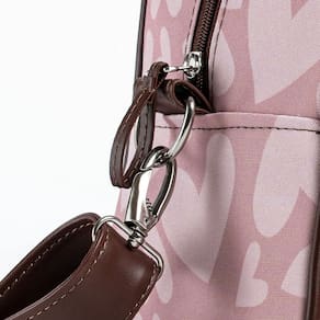 Na cor rosa, tem tamanho médio e vem com estampa de corações, o que deixa a bolsa ainda mais charmosa e delicada, se tornando uma peça ideal para o enxoval do seu bebê.