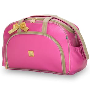 = exterior - fabricada em material sintético antialérgico externamente, material resistente, que não descasca e de fácil limpeza. - alças reforçadas com fita cadarço - alça tira-colo ombro com mosquetão fecho dourado de um dos lados, que possibilita retirada e acomodação no bolso lateral para evitar perdê-la. - bolso frontal - bolso lateral dos dois lados da peça para facilitar o dia-a-dia - ampla abertura do compartimento principal proporcionado pela tampa central com dois cursores, o que facilita a organização e manuseios dos itens na bolsa. - ferragens em dourado - laço de cetim na alça.