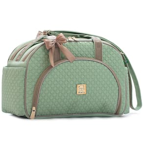 = exterior - fabricada em courino antialérgico externamente, material resistente, que não descasca e de fácil limpeza. - alças reforçadas com fita cadarço - alça tira-colo ombro - bolso frontal - bolso lateral dos dois lados da peça para facilitar o dia-a-dia - ampla abertura do compartimento principal proporcionado pela tampa central com dois cursores, o que facilita a organização e manuseios dos itens na bolsa. - ferragens em dourado - laço de cetim na alça.