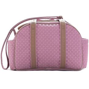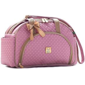 = exterior - fabricada em courino antialérgico externamente, material resistente, que não descasca e de fácil limpeza. - alças reforçadas com fita cadarço - alça tira-colo ombro - bolso frontal - bolso lateral dos dois lados da peça para facilitar o dia-a-dia - ampla abertura do compartimento principal proporcionado pela tampa central com dois cursores, o que facilita a organização e manuseios dos itens na bolsa. - ferragens em dourado - laço de cetim na alça.