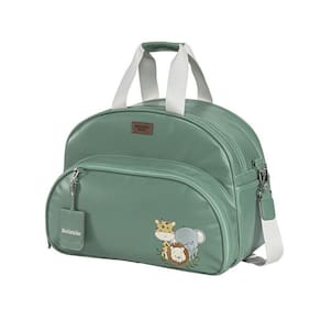 Na cor verde, ela conta com detalhes de bichinhos do safári bordados, super delicada, é muito sofisticada, tem tamanho médio, acompanha também um detalhe especial da marca, que dá um charme para a mesma.