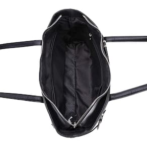 - Interior totalmente forrado com detalhes em couro