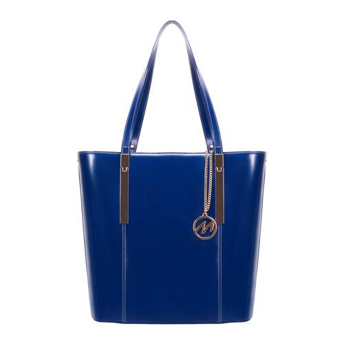 McKLEIN Bolsa feminina de couro com bolso para tablet - CRISTINA - azul-marinho