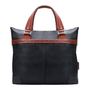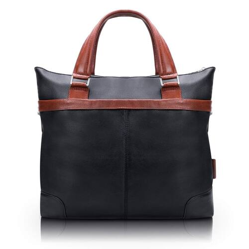 McKleinUSA EASTWARD, couro de bezerro Pebble Grain, maleta bicolor de 15", para laptop e tablet, preta (18392), couro de 15" x 4,5" x 14" - 15", pasta bicolor, para laptop e tablet — bolso frontal e externo oculto com zíper.