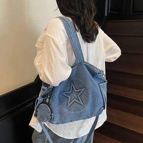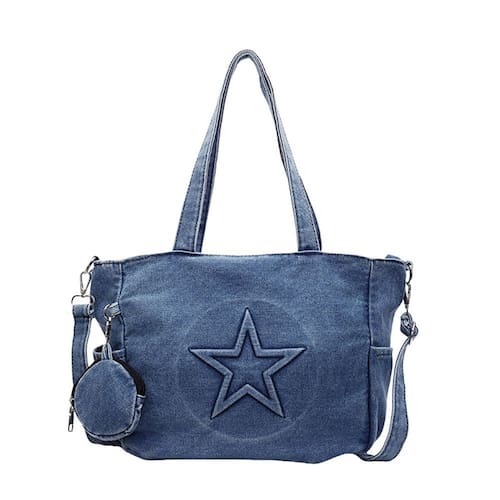 Material: jeans Tamanho: 39 x 12 x 26 cm Peso: 500 g Design moderno de estrelas: com um bordado exclusivo de estrelas, esta bolsa jeans oferece um toque elegante e divertido ao seu guarda-roupa diário, tornando-a perfeita para pessoas modernas. Espaçosa e prática: com um tamanho de 39x12x26 cm, esta bolsa de grande capacidade oferece muito espaço para seus itens essenciais, como livros, tablet, carteira e muito mais, tornando-a ideal para escola, trabalho ou viagens. Durável e confortável: feita de tecido jeans de alta qualidade, esta bolsa é durável e macia, garantindo conforto para uso durante todo o dia e uso duradouro. Opções de transporte versáteis: equipada com alças de ombro e alça ajustável, esta bolsa pode ser carregada como bolsa de ombro, tiracolo ou bolsa de mão, oferecendo versatilidade para várias ocasiões. Ideal para o uso diário: se você está indo para o trabalho, para a escola ou fazendo recados, esta bolsa elegante e funcional facilita o transporte de seus itens essenciais de uma forma moderna.