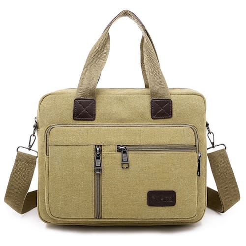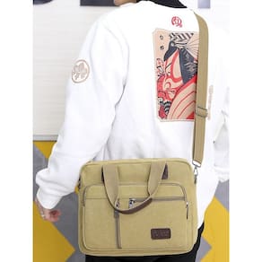 Material: tela Tamanho: 31 x 10 x 24 cm Tecido de lona resistente — Feito de lona espessa e resistente à abrasão para durabilidade duradoura, perfeito para negócios, viagens ou tarefas diárias. Várias opções de transporte — Possui uma alça de ombro removível e alças superiores reforçadas, que podem ser facilmente convertidas entre transporte tiracolo, ombro ou maleta. Layout espaçoso e organizado — Medindo 31x10x24cm, a bolsa inclui bolsos frontais com zíper, um compartimento principal e seções internas para um tablet, notebook e itens pessoais. Estilo casual de negócios — O design simples e funcional com cor cáqui neutra se encaixa perfeitamente em ambientes de escritório ou ambientes casuais de streetwear. Acesso seguro e conveniente — os zíperes frontais permitem acesso rápido a itens essenciais, como cartões, carregadores ou canetas, mantendo tudo ao seu alcance.