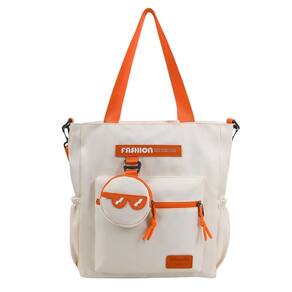 Material: tela Tamanho: 31x10x36 cm Peso: 350 g Design chique e moderno — Tela branca atraente com detalhes vibrantes em laranja, adicionando um toque divertido e elegante a qualquer roupa de verão. Espaçoso e prático — o interior de grande capacidade acomoda facilmente livros, tablets, maquiagem e itens essenciais do dia a dia para trabalhar, fazer compras ou viajar. Layout conveniente com vários bolsos — Possui bolsos frontais com zíper e uma mini bolsa removível para armazenamento seguro e organizado. Tela durável e leve — Feita de tela leve e de alta qualidade que é macia e resistente para uso a longo prazo. Opções de transporte versáteis — a alça ajustável permite o uso na tiracolo, na bolsa de ombro ou na mochila, perfeita para necessidades casuais ou de transporte.